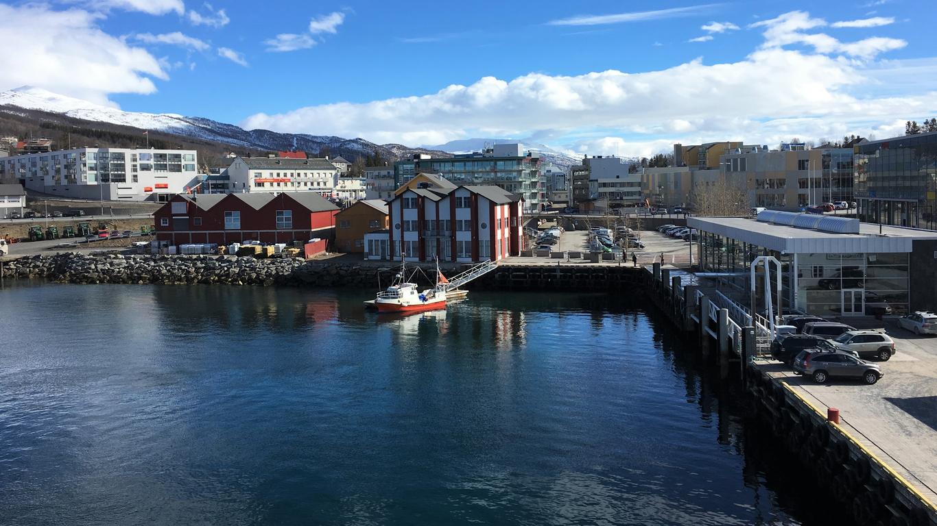 Finnsnes is a picturesque harbour town on the Gisundet Strait. The town is a gateway to Senja, a stunning island known for glacier-carved peaks, cobalt-blue bays and postcard-perfect villages. In the town centre is a tree-filled park set around a natural lake, where you can enjoy a picnic on the grass and relax in the sunshine.